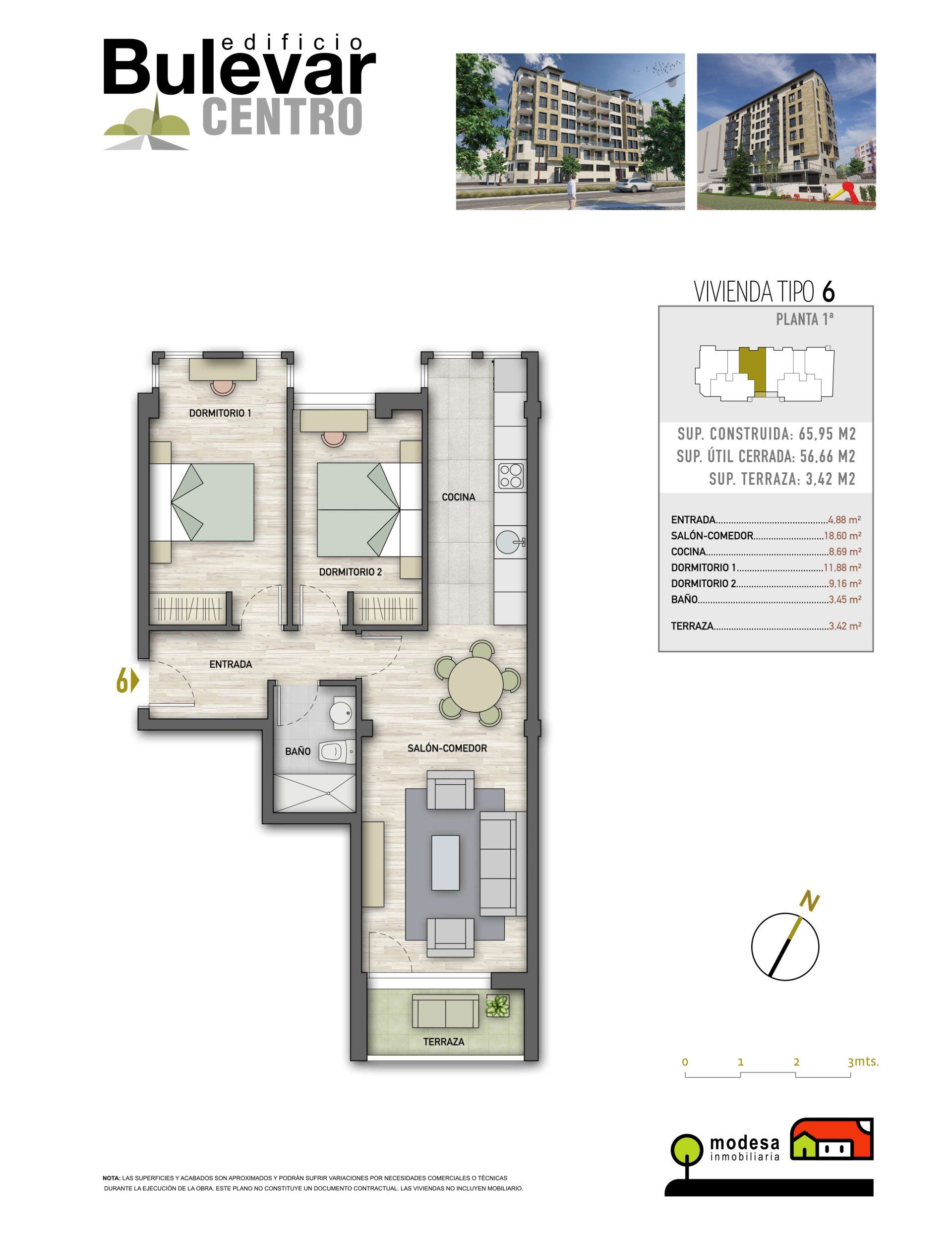 | APARTAMENTO 1º C | VIVIENDA TIPO 6 | 60 | 2 | 1 | SI | SI | SI |